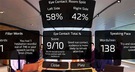 When I work with CEOs, we always do a practice auditorium speech in front of a room of advisors and colleagues. That’s not feasible for everyone, but we can generate a fake audience. It’s definitely worth checking out the VirtualSpeech app – you’re going to need a VR headset, but it’s so worth it. If you’re a bit of a geeky perfectionist like me, the analysis is going to blow your mind.